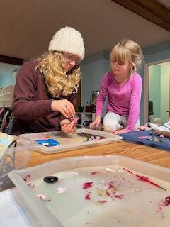 Following about half an hour of play (or longer on pleasant days), the group returns to the center for a snack. Afterwards, there is more time for play, either indoors or outdoors. Inside, we engage in baking, crafting, playing board games, and enjoying a variety of toys, puzzles, and group games. We also make the most of outdoor activities, utilizing the sports field, basketball courts, and wooded areas throughout the school district property, as well as the wider Roberts Creek community.